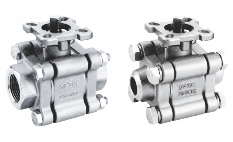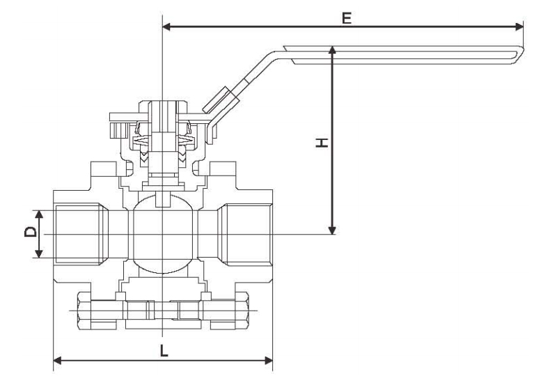 三片式2000PSI內(nèi)螺紋高平臺(tái)球閥外形尺寸